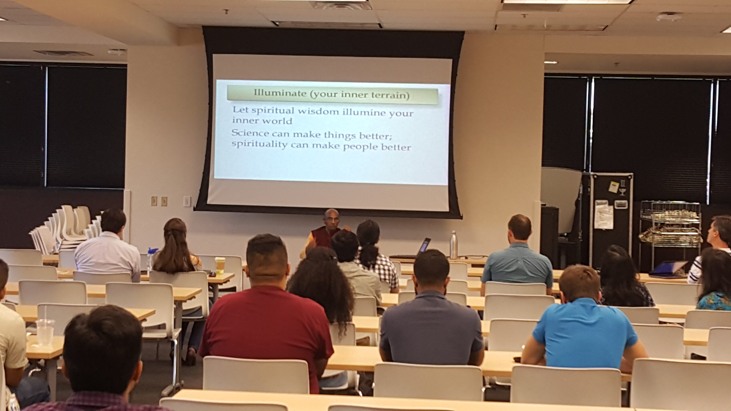 Most by college program organizers asked me to speak on “Spirituality in the age of science.” Not wanting to speak the same content again and again, I started approaching the topic from different angles in different talks. And I soon discovered that I had enough approaches to address this topic in a full book. One such talk centered on “The hard problem of consciousness” at the Texas A and M university, College Station. I explained how consciousness is the basis of all our knowledge – even the denial of consciousness requires the presence of consciousness. While research may show which areas of the brain are activated when we have different emotions and experiences, the emotions and experiences themselves can’t be reduced to anything mechanical, be it neural or digital.