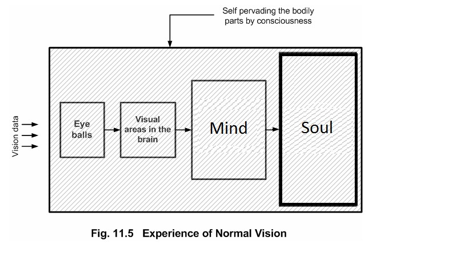 But because the soul and the body are essentially different, the soul can separate from the body under special circumstances like when the body is damaged. Upon such separation, the soul continues to be conscious through the subtle body even when the brain is dysfunctional. This is how NDEs take place. This mechanism is diagrammatically depicted below: